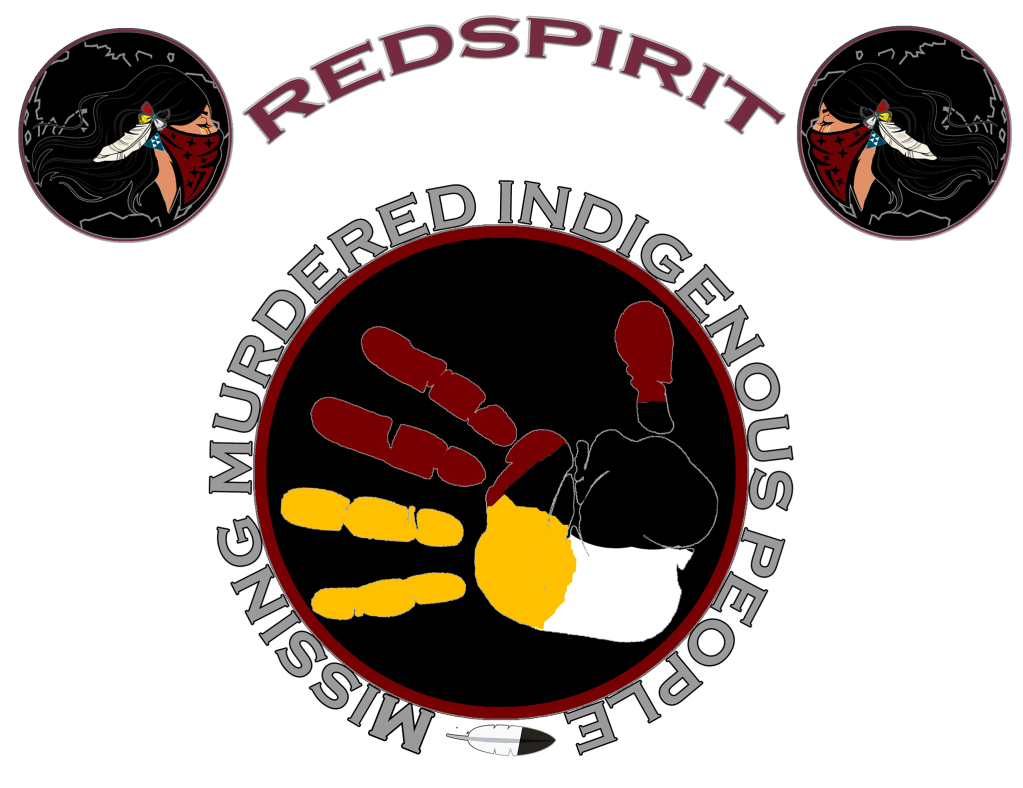The profile view of a woman wearing a red and black 7 Star bandana is based on the Redrum Patch. It represents the Spirit of each of us, timeless, wearing the 4 colors of the medicine wheel, honoring the four stages of life and the four colors of mankind.